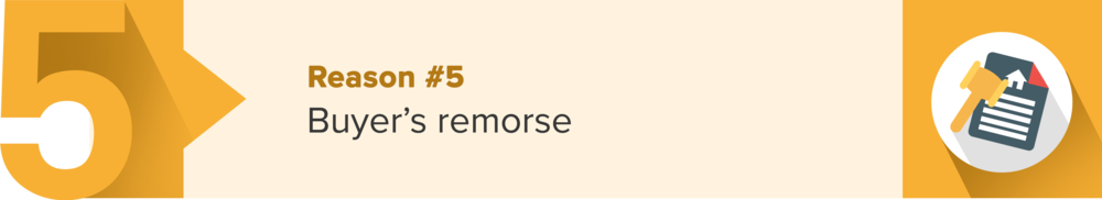 Buyer's remorse or “cold feet” is real. It’s when the buyer backs out of a deal at the last minute after they realize that they don’t want to buy the home. It happens to both first-time and repeat buyers. After all, buying a home is a huge financial decision and is far from simple.